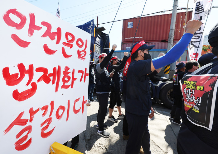 전국민주노동조합총연맹(민주노총) 산하 공공운수노조 화물연대본부는 화물자동차 안전 운임제 일몰 폐지 및 확대, 고유가에 따른 운송료 인상 등을 요구하며 이날 0시부터 무기한·전면 총파업에 돌입했다. 2022.6.7
