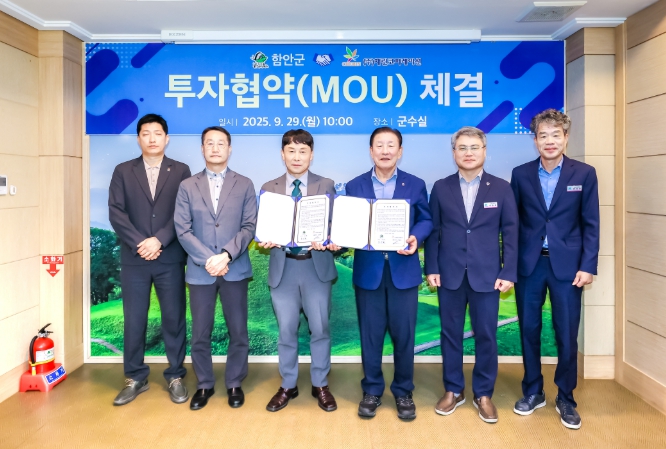 [코리아 이슈저널=김태훈 기자] 함안군과 ㈜채린코퍼레이션은 지난 29일 총 145억 원 규모의 투자협약(MOU)을 체결했다고 밝혔다.