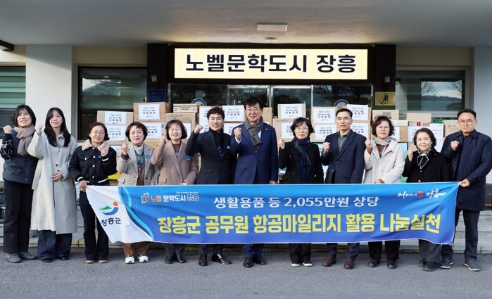 [코리아 이슈저널=김종오 기자] 장흥군 공무원 122명이 공적 항공마일리지를 활용해 마련한 20,558,250원 상당의 생필품 197점을 지역 취약계층에 전달했다.