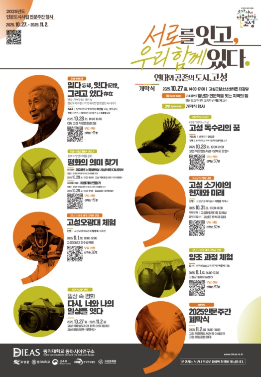 [코리아 이슈저널=김태훈 기자] 고성군은 동의대학교와 협력하여 수행하는 사업인 ‘2025년도 인문도시사업 인문주간 행사’를 10월 27일 청소년센터 온에서 개막식을 시작으로 11월 2일까지 7일간 개최한다.