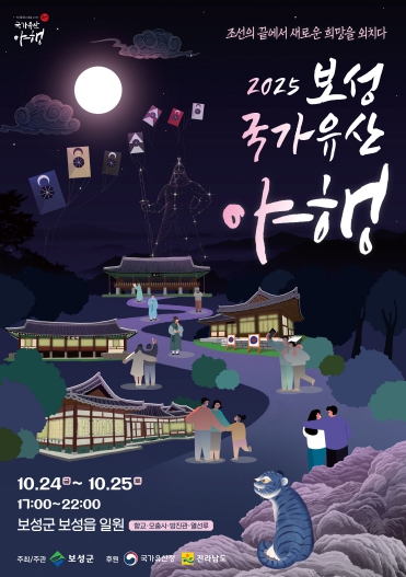[코리아 이슈저널=김윤영 기자] 보성군은 오는 10월 23일과 24일 이틀간 오후 5시부터 10시까지 보성읍 일원에서 ‘2025 보성 국가유산 야행’을 개최한다고 밝혔다.