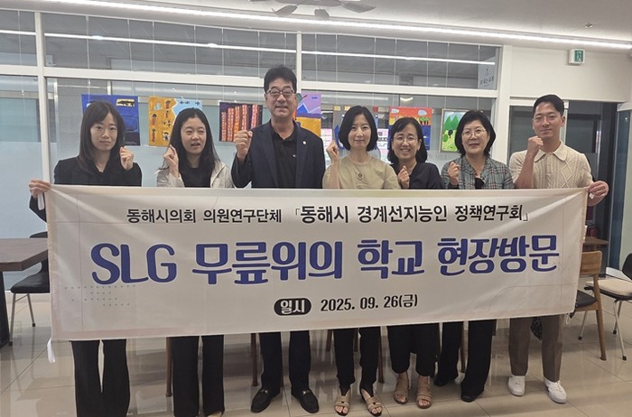 [코리아 이슈저널=홍춘표 기자] 동해시의회 의원연구단체 ‘동해시 경계선지능인 정책연구회’에서는 9월 25일부터 26일까지, 경기도 고양시 '이루다학교'와 용인시 'SLG 무릎위의학교'로 현장 방문을 실시했다.