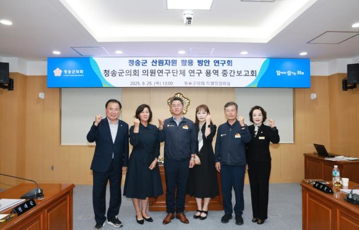[코리아 이슈저널=김태훈 기자] 청송군의회 의원연구단체인 ‘청송군 산림자원 활용 방안 연구회’는 지난 25일 청송군의회 특별위원회실에서 연구용역 중간보고회를 개최했다.