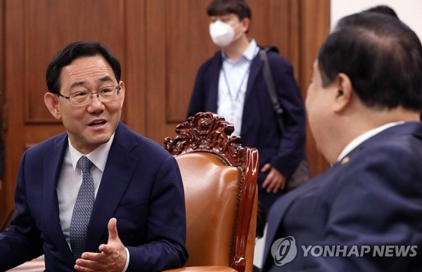 주 원내대표는 "은퇴하면서 국회가 잘되도록 여당에 말씀을 많이 해 주고, 저희도 많이 지도해달라"고 전하며 문 의장은 "코치할 필요가 없는 것 같다. 천생연분 같다"고 화답했다.
