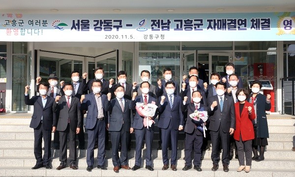 이정훈 강동구청장은 “청정 자연과 첨단과학이 공존하는 고흥군과 자매결연 체결을 뜻깊게 생각한다. 앞으로 지속적이고 실질적 교류를 통해 상호 발전할 수 있는 동반자로서의 관계를 다져가겠다”라고 말했다.