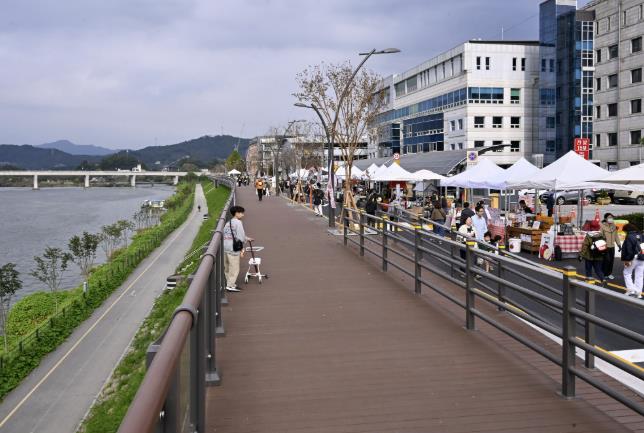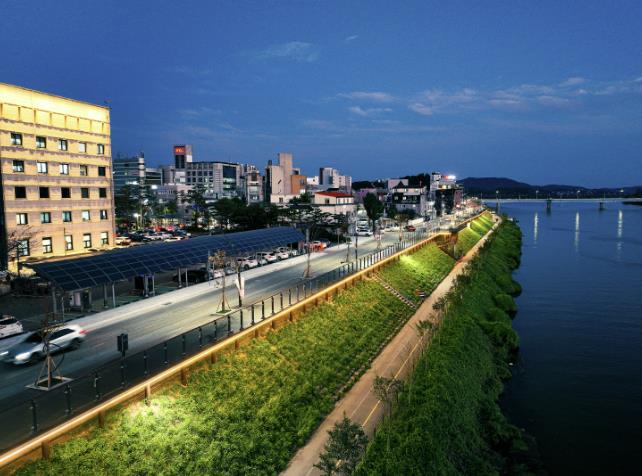기존 산책로에 폭 5m 규모의 데크길을 새로 놓고, 벤치와 가로수, 야간경관 조명을 추가해 낮에는 남한강 조망을 즐기고 밤에는 빛의 거리로 변하는 매력적인 공간으로 꾸몄다. 천혜의 남한강 물길과 도시재생의 결실이 어우러진 이번 사업을 통해 양평의 중심 강변이 다시 활기를 찾게 됐다.