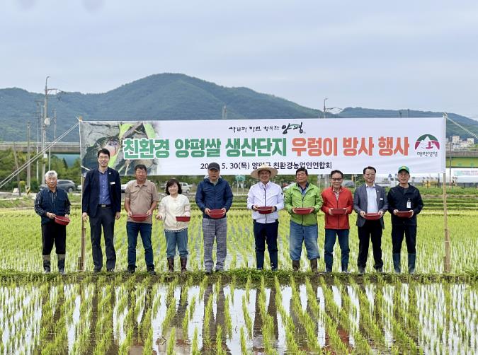 | ▲ 친환경 양평쌀 생산 우렁이 방사 행사 |