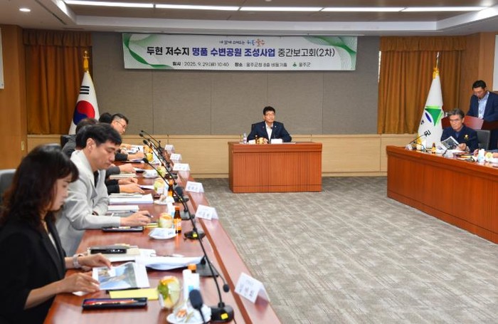 [코리아 이슈저널=김태훈 기자] 울산 울주군이 29일 군청 비둘기홀에서 이순걸 군수와 관계 공무원 등이 참석한 가운데 ‘두현저수지 명품 수변공원 조성사업 실시설계용역’ 2차 중간보고회를 개최했다.