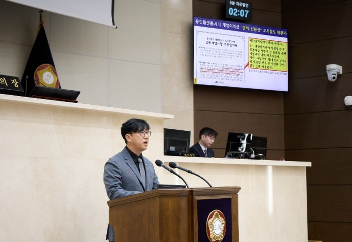 [코리아 이슈저널=홍춘표 기자] 용인특례시의회 김병민 의원(구성동,마북동,동백1동,동백2동/더불어민주당)은 16일 열린 제298회 임시회 제1차 본회의에서 5분 자유발언을 통해 ‘제2차 경기도 도시철도망 구축계획’에 반영된 동백–신봉선 철도망의 원활한 추진을 위한 정책적 대응과 선제적 준비를 강력히 촉구했다.