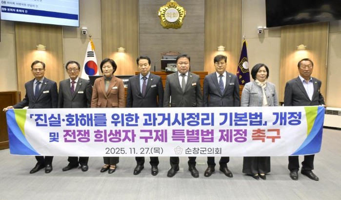 [코리아 이슈저널=홍춘표 기자] 순창군의회는 지난 27일 제299회 임시회 제1차 본회의에서 조정희 의원이 대표발의한 '진실·화해를 위한 과거사정리 기본법 개정 및 전쟁 희생자 구제를 위한 특별법 제정 촉구 건의안'을 채택했다.