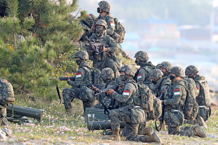 [열린의정뉴스 = 김윤영 기자] 24일 경북 포항시 북구 송라면 해안에서 한 여단급 합동 상륙훈련에서 해병대원이 상륙한 뒤 주변을 경계하고 있다. 2022.5.24
