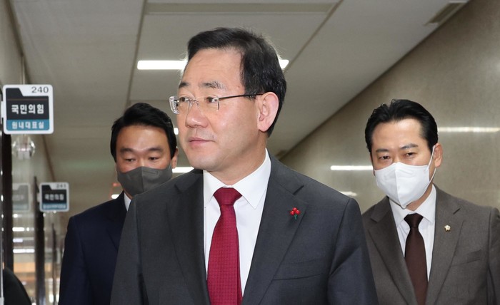 ▲ 국민의힘 주호영 원내대표(가운데)와 정개특위위원인 정희용(왼쪽), 장동혁 의원(오른쪽)이 4일 오전 서울 여의도 국회에서 열린 국민의힘 원내대표-정개특위위원 선거구제 개편 관련 비공개 긴급회의에 참석하고 있다. 2023.1.4