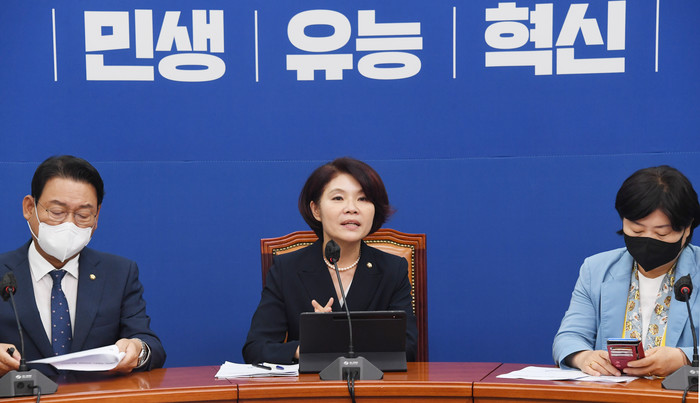 | ▲ 행정안전부 경찰국 출범을 하루 앞둔 1일, 국회에서 열린 더불어민주당 윤석열정권 경찰장악대책위 첫회의에서 한정애 위원장이 발언하고 있다. 2022.8.1 [국회사진기자단] |
