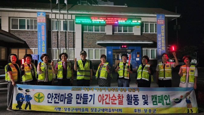 [코리아 이슈저널=김종오 기자] 장흥군새마을부녀회(회장 전순란)는 8월 4일부터 2주간을‘안전주간’으로 지정하고, 장흥군 10개 읍면을 대상으로 순차적인 야간순찰 활동을 펼치고 있다.