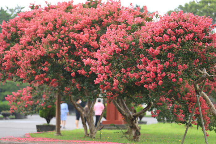 [열린의정뉴스 = 김진성 기자] 9일 오전 제주시 애월읍 항몽유적지에 배롱나무 꽃이 활짝 피어 오가는 이들의 눈길을 끌고 있다.