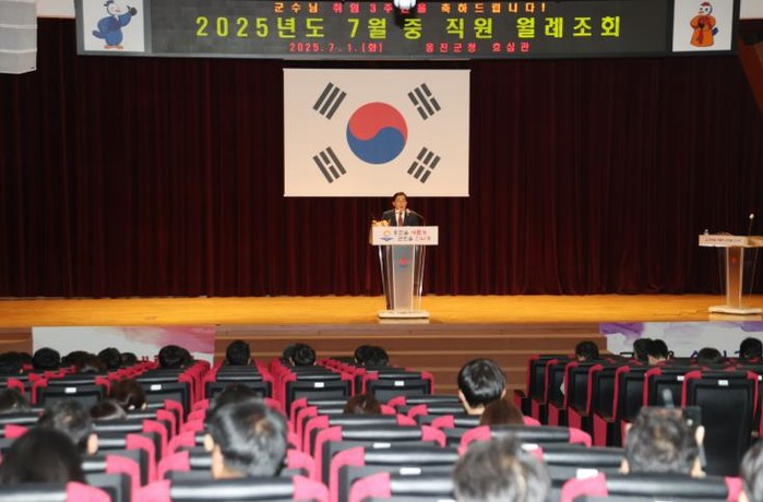 [코리아 이슈저널=홍춘표 기자] 옹진군은 이번달 1일 효심관에서 전 직원들이 참석한 가운데7월 중 월례조회를 가졌다.