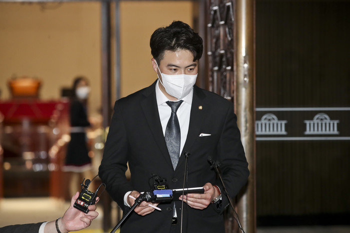 | ▲ 더불어민주당 오영환 원내대변인이 12일 오후 서울 여의도 국회에서 정책의원총회가 끝난 뒤 브리핑을 하고 있다. 2022.4.12 [국회사진기자단] |