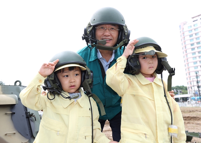 이 시장은 고양시 꿈나무 민방위 대장으로 위촉된 어린이들과 함께 체험장 코스를 돌며 군장비 관람과 장갑차 탑승 체험을 했다.