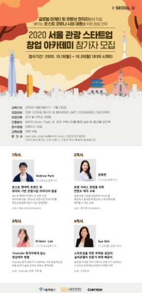[열린의정뉴스 = 김진성 기자] 서울시와 서울관광재단(대표이사 이재성)이 코로나19로 큰 어려움을 겪고 있는 관광업계의 재도약을 위해 '2020 서울관광 스타트업 창업 아카데미'를 온라인으로 개최한다. 관광 스타트업의 경쟁력을 강화하고, 예비 창업자를 육성하기 위해 기획된 이번 아카데미는 오는 26일까지 참가자를 모집한다.