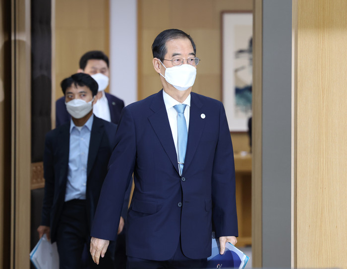| ▲ 한덕수 국무총리가 30일 오전 세종시 정부세종청사에서 서울청사와 영상으로 연결해 열린 국무회의에 입장하고 있다. 2022.8.30 |