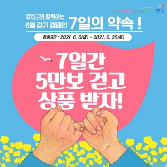 양천구, 6월 비대면 걷기 챌린지 '7일의 약속' 진행