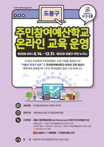 | ▲ 도봉구 주민참여예산학교 온라인 교육 홍보 포스터[출처=도봉구청] |