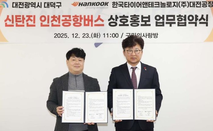 협약에 따라 대덕구와 한국타이어 대전공장은 △근로자 대상 인천공항버스 이용 홍보 및 안내 △사내 홍보 매체를 활용한 운행 시간표·노선·운임 정보 제공 △근로자 이용 의견 수렴 및 개선 사항 공유 △공항버스 이용 활성화를 위한 지속적인 협력 등을 추진한다.
