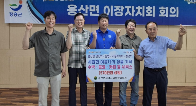 [코리아 이슈저널=김종오 기자] 장흥군 용산면 기관·사회단체에서는 18일 정기 이장회의에서 어르신들의 건강한 여름나기를 위한 기탁행사를 가졌다.