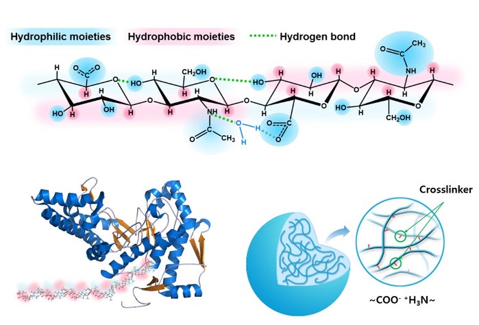 연구팀은 헥사메틸렌다이아민을 가교제로 사용해 히알루론산이 쉽게 분해되지 않는 젤 형태를 만들었다.