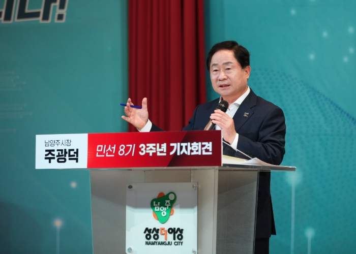 [코리아 이슈저널=홍춘표 기자] 주광덕 남양주시장은 취임 3주년을 맞아 21일 시청 다산홀에서 기자회견을 열고 지난 3년간의 시정 성과와 앞으로의 비전을 공유했다.