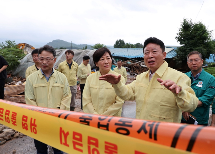 [코리아 이슈저널=홍춘표 기자] 기록적인 폭우로 산사태와 축사 침수 피해가 발생한 경기도 가평군 일대를 21일 오전 송미령 농림축산식품부 장관이 찾았다. 현장을 찾은 송 장관은 “재난은 신속한 피해복구가 생명”이라며 피해 농가의 애로사항을 청취하고 응급 복구 및 방역 대책을 점검했다.
