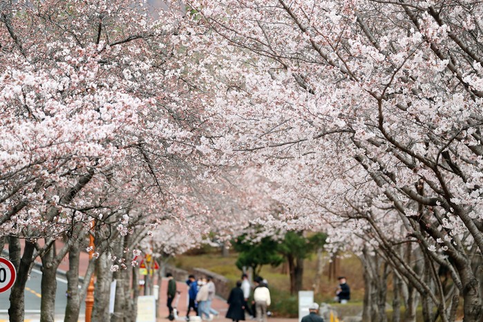 [열린의정뉴스 = 김윤영 기자] 28일 오후 대구 달서구 계명대학교 성서캠퍼스에 봄기운이 가득하며 벚꽃들이 꽃망울을 터트리고 있다. 2022.3.28