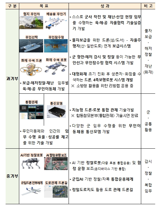 무인 이동체 원천기술 개발사업의 주요 성과를 군(軍) 소요와 연계·검증