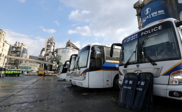 단양 시멘트공장에 배치된 경찰 - 코리아 이슈저널