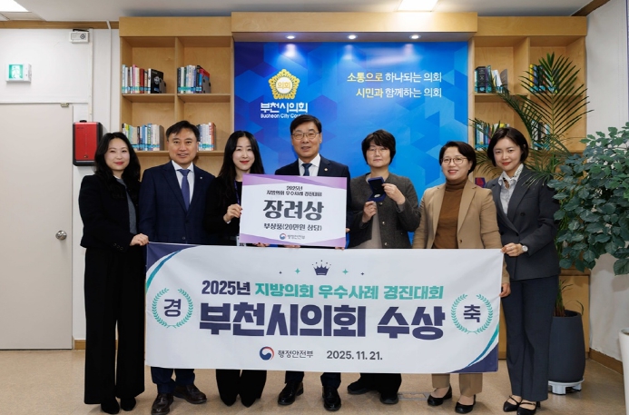 [코리아 이슈저널=홍춘표 기자] 부천시의회는 21일 울산전시컨벤션센터에서 열린 행정안전부 주관 ‘2025년 지방의회 우수사례 경진대회’에서 의정활동 분야 ‘장려상’을 수상했다.