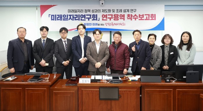 [코리아 이슈저널=김태훈 기자] 창원특례시의회 미래일자리연구회(대표의원 진형익)는 24일 착수보고회를 열고 지난 4년 간 수행해 온 정책연구 성과를 제도화하기 위한 심화연구를 시작했다.