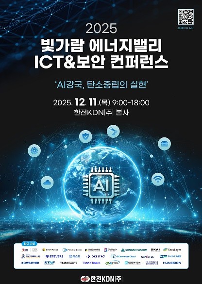 올해로 8회째를 맞는 이번 컨퍼런스는 12월 11일 광주전남공동혁신도시 한전KDN 본사 빛가람홀에서 개최된다. ‘AI강국, 탄소중립의 실현’을 주제로, 인공지능(AI), 클라우드, 스마트 보안 등 첨단 ICT 기술 트렌드와 탄소중립을 뒷받침하는 AX·DX(에너지 디지털 전환) 전략을 다각도로 공유한다.