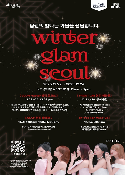 [코리아 이슈저널=최준석 기자] 서울시가 서울윈터페스타를 찾은 국내외 관광객에게 차별화된 한류 경험을 제공하기 위해 K-뷰티를 주제로 한 ‘윈터 글램 서울(Winter Glam Seoul)’ 팝업 행사를 12월 22일부터 24일까지 3일간 개최한다.