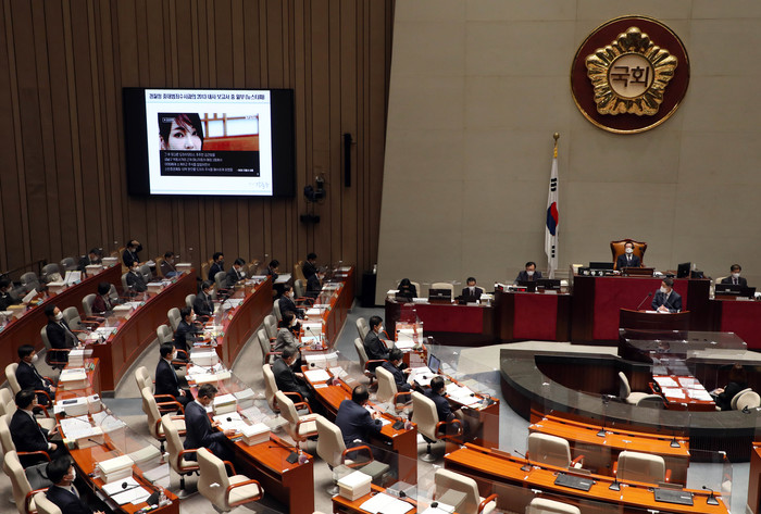 | ▲ 12일 열린 국회 예산결산특별위원회 비경제부처 부별심사에서 더불어민주당 강득구 의원이 박범계 법무부 장관에게 윤석열 국민의힘 대선후보의 부인 김건희씨 도이치모터스 주가조작 사건 연루 의혹과 관련해 질의하고 있다. 2021.11.12 [국회사진기자단] |