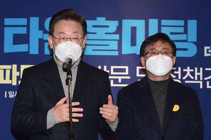 이 후보는 윤 후보 부인 김건희씨의 '7시간 통화' 보도 여부를 법원이 판단하는 것과 관련해서는 "제가 특별히 드릴 말씀은 없다"며 "법과 상식, 국민 정서에 맞게 결론날 것"이라고 밝혔다.