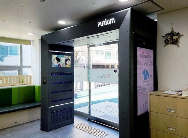 | ▲ 지난 14일 맑은숲어린이집에 설치된 스마트 사물인터넷(IoT) 에어샤워[출처=용산구청] |