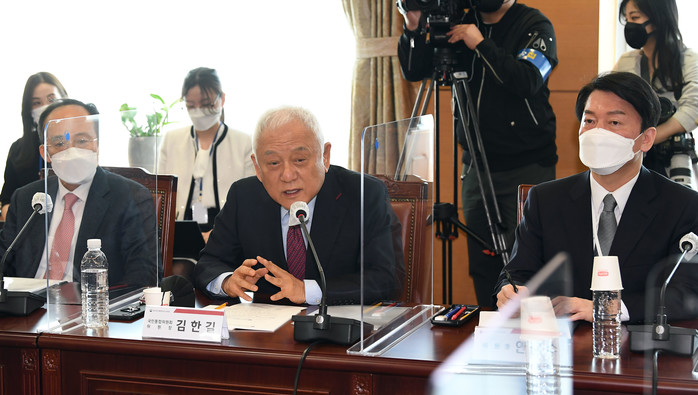 | ▲ 김한길 제20대 대통령직 인수위원회 국민통합위원장이 29일 서울 종로구 통의동 금융감독원 연수원에 마련된 제20대 대통령직인수위원회에서 열린 간사단 회의에서 발언하고 있다. 2022.3.29 [인수위사진기자단] |