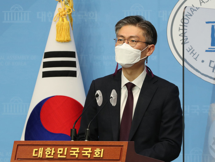 | ▲ 서울시장 보궐선거에 출마한 시대전환 조정훈 의원이 22일 오전 서울 여의도 국회 소통관에서 정책공약 발표 기자회견을 하고 있다. 2021.2.22 |