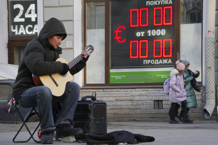 | ▲ 루블화와 유로화 환율 게시 중단한 러시아 환전소 [AP=연합뉴스] |