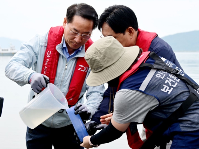 간담회에 앞서 유정복 시장은 관계자들과 함께 강화 해역 안전성을 직접 점검하고, 방사능 검사를 위한 해수 시료를 채취했다. 이어 현장에서 수산물을 직접 구매하고 시식하며 안전성을 확인했다.