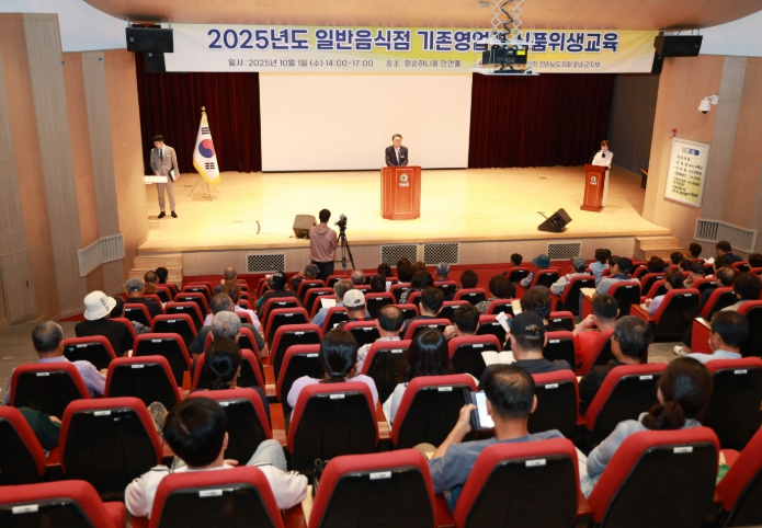 [코리아 이슈저널=김종오 기자] 화순군과 (사)한국외식업중앙회 전라남도지회 화순군 지부(지부장 이향심)는 지난 10월 1일 하니움스포츠문화센터 만연홀에서 관내 일반음식점 영업주 200여 명을 대상으로 '2025년도 일반음식점 영업자 위생교육을 진행했다.