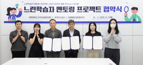 한국가스공사는 8월 11일 경북대학교 지역사회공헌센터, 이음발달지원센터와 함께 대구 지역 경계선 지능 아동·청소년의 사회 적응을 지원하는 ‘느린학습자 멘토링 사업’ 업무협약을 체결했다고 12일 밝혔다.