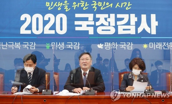 [열린의정뉴스 = 최용달 기자] 김태년 더불어민주당 원내대표는 15일 국정감사 대책회의에서 라임·옵티머스 자산운용 사건과 관련 "라임·옵티머스는 범죄자의 금융 사기 사건"이라며 "정부·여당을 공격하기 위해 아무 데나 권력형 게이트라는 딱지를 갖다 붙이고 공격 소재로 삼으려는 것은 맞지 않다"고 밝혔다.