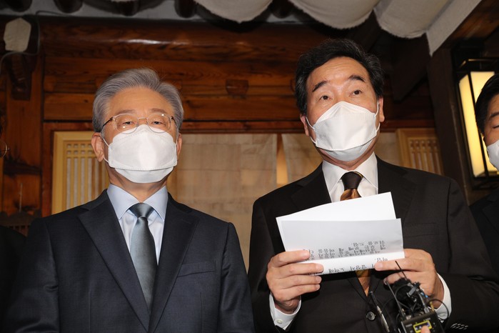 | ▲ 더불어민주당 이낙연 전 대표가 지난달 24일 오후 서울 종로구 안국동 한 찻집에서 이재명 대선 후보와 회동에 앞서 발언하고 있다. 2021.10.24 [국회사진기자단] |