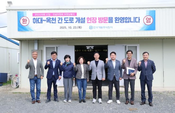 [코리아 이슈저널=김태훈 기자] 경산시의회 산업·건설위원회는 10월 23일, 제265회 임시회 기간 중 남산면 하대리에서 자인면 옥천리 일원에 이르는 ‘하대 ~ 옥천간 도로 개설 사업’ 현장을 방문해 추진 상황을 점검했다.